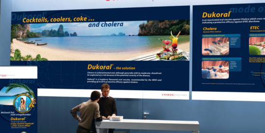 Harriett Renardy2019-05-03T10:39:09+02:00Durchschlagende Bildwirkung Wohl niemand will in den schönsten Tagen des Jahres so sitzen gelassen werden. Daher zeigt die Kampagne mit der ungewöhnlichen Bildkombination von Urlaubsparadies und Durchfallhölle als Keyvisual durchschlagende Wirkung. Rein sachlich dagegen veranschaulichen 3-D-Illustrationen die medizinische Wirkungsweise des einzigen Impfstoffes gegen Cholera, der zusätzlich Schutz vor dem häufigsten Erreger von Reisedurchfall (ETEC) [...]