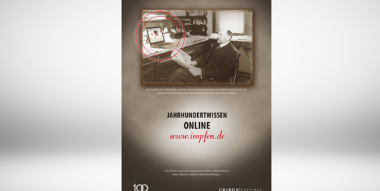 Harriett Renardy2019-05-02T18:10:52+02:00Hinleitbild mit Schlüsselreiz Der bleibende Unternehmens-USP als Aufhänger einer Imagekampagne für CHIRON VACCINES BEHRING online: Emil von Behring, erster Nobelpreisträger der Medizin und Gründer der Behringwerke, in historischem Pionierambiente visionär vor einem Laptop. Durch diese klare Bildbotschaft und dem Schlüsselwort „Jahrhundertwissen“ wird die Zielgruppe Ärzte unter starkem Imageeffekt zu der Internetseite des Impfstoffherstellers geleitet. [...]
